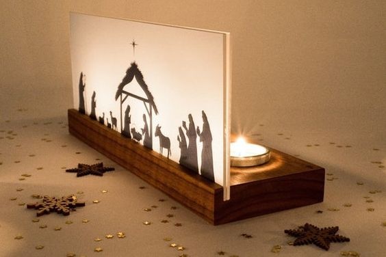 Pesebre en madera y vidrio, original. Entregamos sin velas.