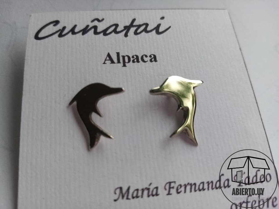 Caravanas diseño delfines chicos en alpaca Tapon de silicona